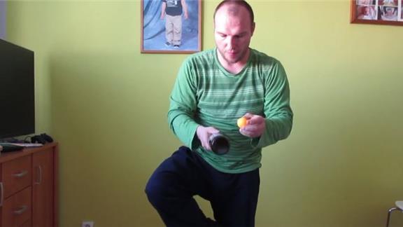 Pavol Durdik bounced a table tennis ball on a beer bottle 47 times while standing on one leg.