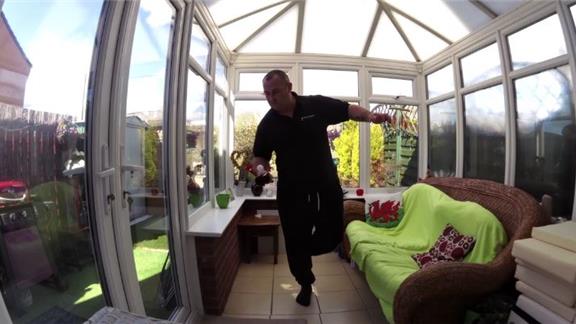 Mark Evans bounced a table tennis ball on a beer bottle 65 times while standing on one leg.