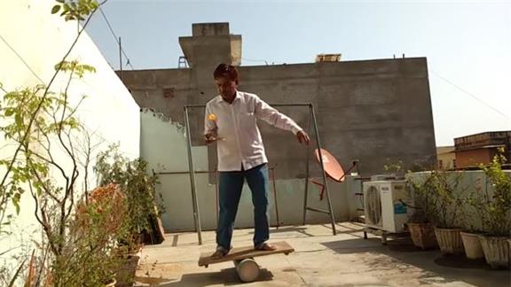 Suresh Gaur bounced a table tennis ball on a paddle handle 175 times while standing on a rola bola.