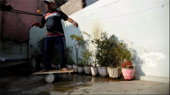 Most Consecutive Table Tennis Ball Bounces On Alternate Sides Of Paddle While Balancing On A Rola Bola