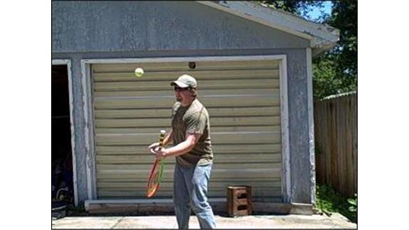 Brian Pankey bounced a tennis ball 31 times back and forth between the base of a tennis racket handle and the racket face.