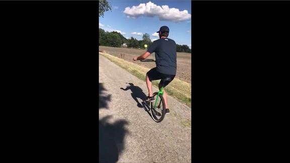 Most Consecutive Tennis Ball Bounces On A Tennis Racquet While Riding A Unicycle