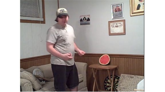 Brian Pankey threw five consecutive cards individually into a wedge of watermelon from a distance of five feet.