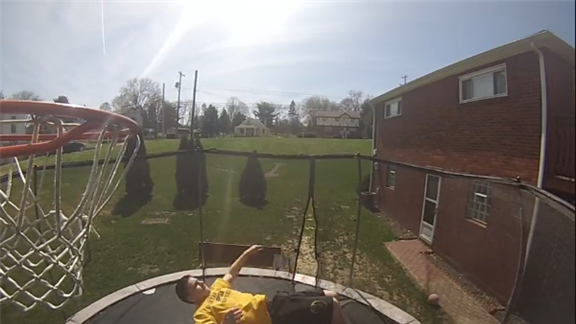 Ryan D. performed 25 "legs-to-back-to-legs" somersault tricks on a trampoline.
