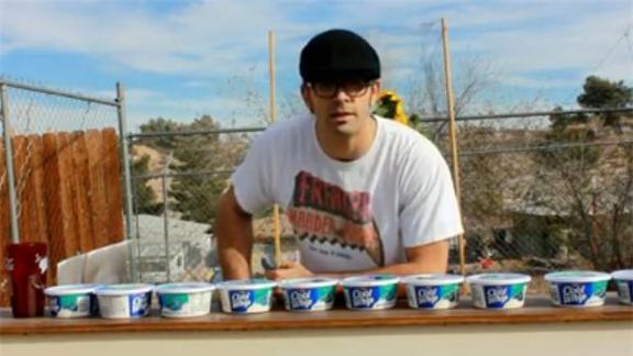 Naader Reda ate nine full containers of Cool Whip for a YouTube video. He set the record to celebrate Thanksgiving Day.