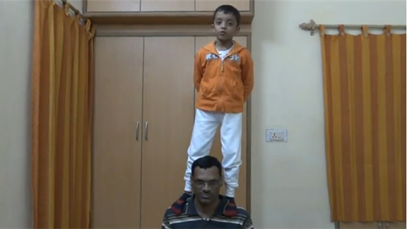 Daksh Choudhary counted from 1 to 100 in 49.76 seconds while standing straight on his father’s shoulders.