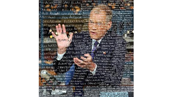 Using Microsoft Paint, Ilona Jurek painted the names of 262 country singers over an image of David Letterman. Names he wrote included Chet Atkins, Patty Loveless, and Conway Twitty.