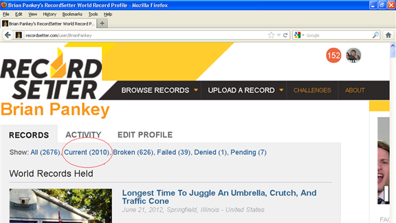 Brian Pankey holds 2,010 current world records via RecordSetter.