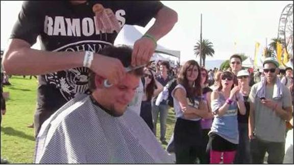 John Cabral gave Grant Robinson a mullet haircutin one minute, 23.77 seconds.