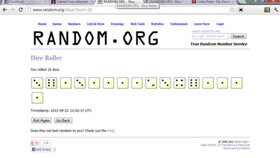 Maxim De turned up nine dice with one pip displayed after rolling 16 dice on Dice Roller.