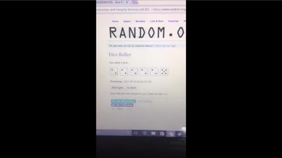 Nicholas L. turned up five dice with two pips displayed after rolling six dice on Dice Roller.