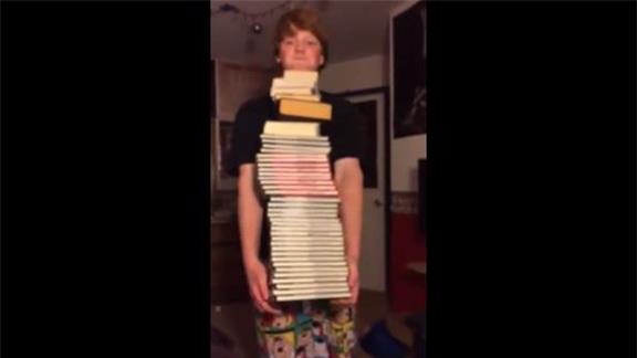 Andy H. held 39 dictionaries, thesauruses, and encyclopedias at once.