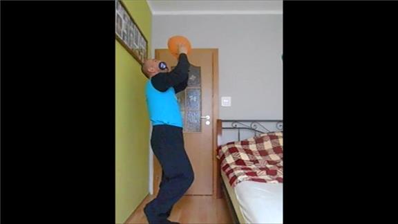 Pavol Durdik rotated his arms in one direction 90 times in 10 seconds while holding two kitchen knives in his hands, holding a 2.5 kilogram dumbbell in his mouth, bouncing a balloon using his head and standing on his left leg.