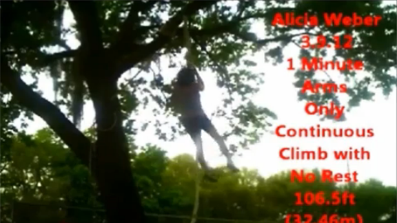 Alicia Weber climbed a total distance of 34.26 meters on an arms-only rope in one minute. The climb was made non-stop, without pauses.