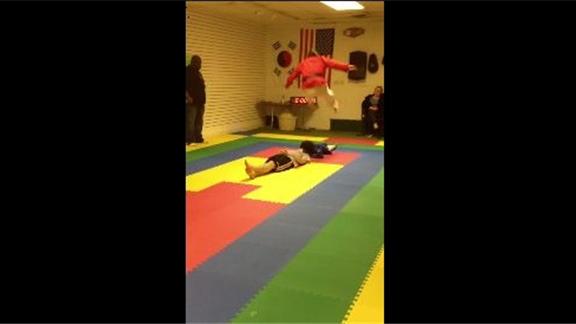 Matthew reached 10 feet jumping over two people.
