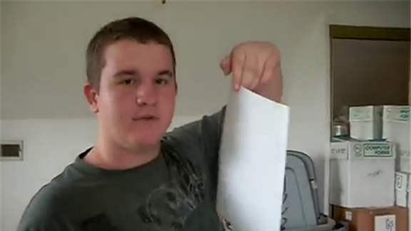 This needs to be redone with the camera behind you instead of facing you. You clearly cant see the paper going that far this needs to be reviewed