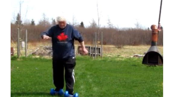 Doug McManaman walked 50 yards with two 10-pound dumbbells on his feet.