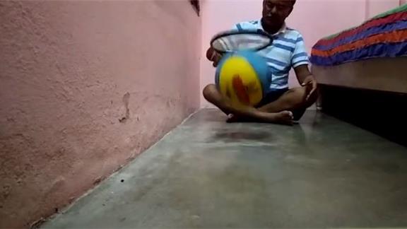 Suresh Gaur dribbled a basketball using one side of a tennis racquet for 17 minutes, 54.02 seconds while sitting.