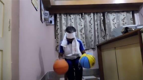 Suresh Gaur dribbled two basketballs blindfolded for 12 minutes, 33.05 seconds.