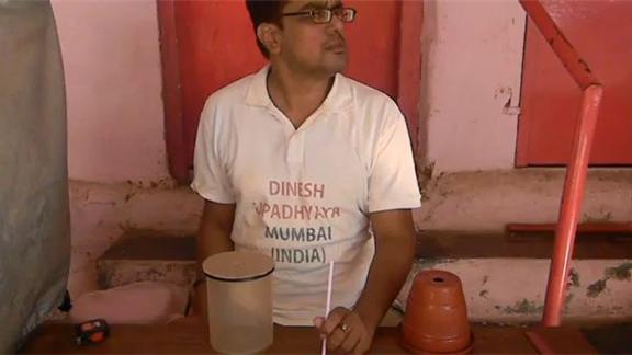 Dinesh Shivnath Upadhyaya put 56 peas in a bowl using a straw in one minute.