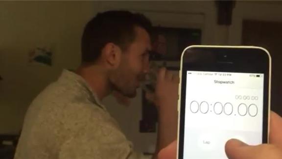 Merritt W. drank a full eight-ounce glass of water in 2.25 seconds.