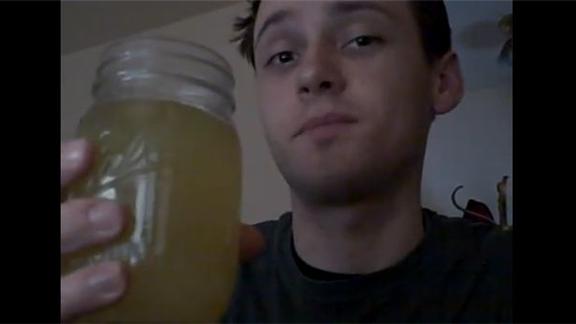 Johnny F. drank a 1.75-cup of combined lemon, olive, and pickle juice in 27.35 seconds.
