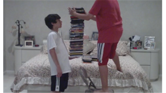 David Dargay held a tower made of 75 DVD cases in his hand.