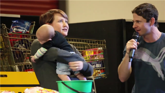 Fastest Time To Eat A 50-Gram Bag Of Caramel Popcorn While Holding A Baby