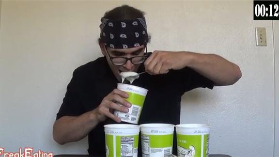 Naader Reda ate eight pounds of yogurt in three minutes, 35.00 seconds.