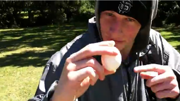 Rob Watch from 14- 16 seconds right when alex is catching it you can see it fall down into his hands.
