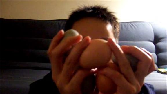 Sean Q. balanced five eggs on his face.