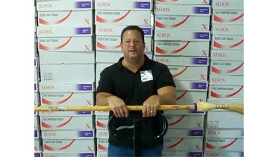 Guido Balducci knocked over 44 empty paper boxes with a broom while riding a pallet jack. The wall of boxes he’d set up originally had 55 boxes.