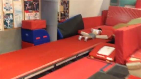Rule: - may not use a springboard or other device to add height to flip And because I'm a gymnast! I know that this IS a spring loaded floor!!