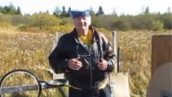 Doug McManaman fired a shot through a double-curved pipe using a .22-caliber rifle from 60 yards away, lighting a light bulb at the end.