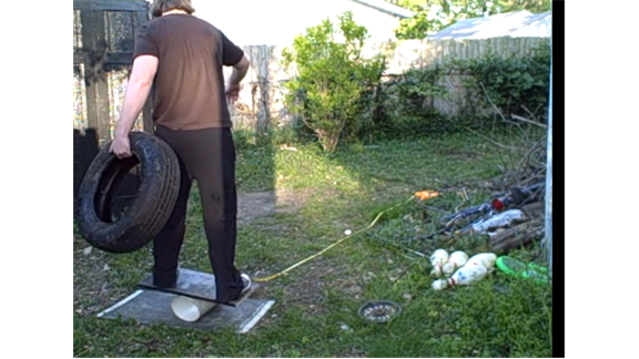 Farthest Distance To Throw A Tire One Handed While Standing On A Rola Bola