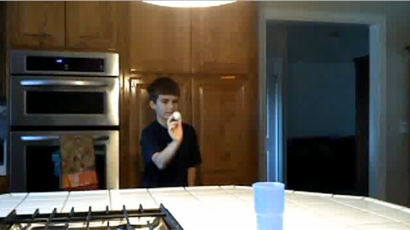 Mason Triplett took three tries to throw a ping pong ball into a glass.