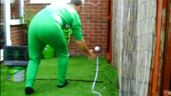 Mark E. fielded a baseball off of the ground after bouncing off side of a building 27 times in 30 seconds.