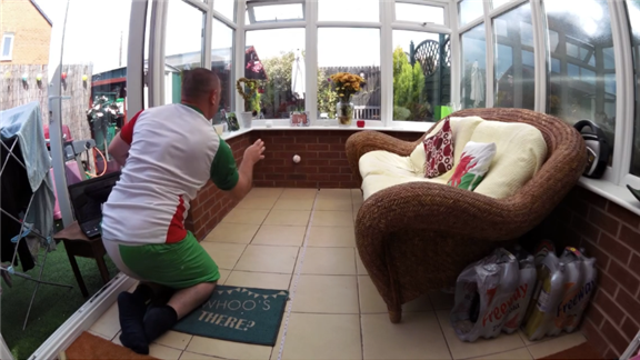 Mark Evans fielded a baseball off of the ground after bouncing off side of a building 33 times in 30 seconds.