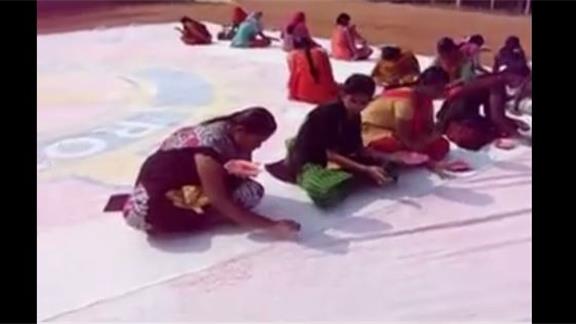 Group members from Rotary Club of Tirupur Pride and AVP Trust Educational Institutions Tirupur created a painting using their fingerprints. The painting measured 24 meters in length and 23 meters in width.
