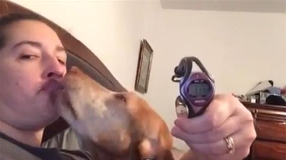 While this video is extremely awesome, we've decided to deny this attempt. The title of the record is Longest Time for A Dog to Lick One's Face, not Longest Time for Dogs to Lick One's Face. No single dog licks Alyjha's face for the duration of the attempt.