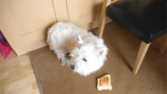 - timing stops when pet dog takes a drink after eating entire piece of toast