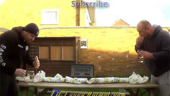 The Essex Animal and his friend ate six Subway footlong sandwiches in five minutes, 12.00 seconds.