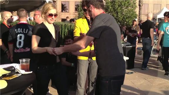 Abigail Drachman-Jones exchanged business cards with her friend in 1.84 seconds. The record was set during the 2012 SXSW Festival in Austin, Texas.