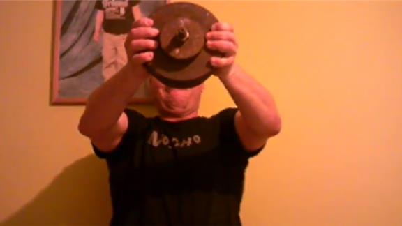 I FEEL THAT PAVOL IS DRIFTING AWAY FROM THE ORIGINAL WORLD RECORD SET BY CLINT POORE. PAVOL SEEMS TO HAVE A SPREAD WEIGHT OVER A DUMBELL WHILE CLINT IS HOLDING A LARGE CIRCULAR 35 POUNDS.