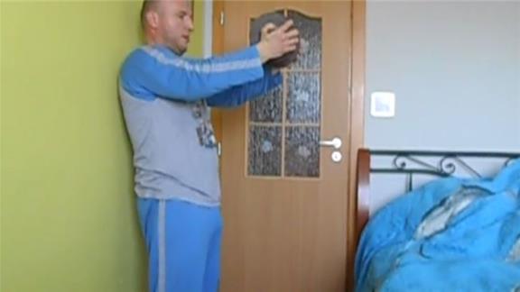 PAVOL SEEMS TO BE SPREADING WEIGHT OVER THE DUMBELL AND DRIFTING AWAY FROM THE ORIGINAL WORLD RECORD BY CLINT POORE.