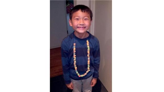 Danny Y. made a necklace using 101 Froot Loops.