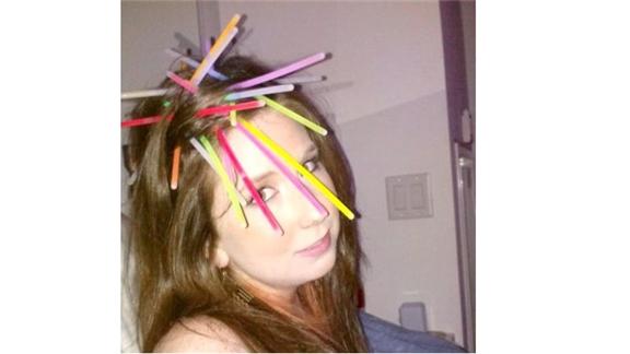Kaitlyn Herzog put 15 glow sticks in hair.