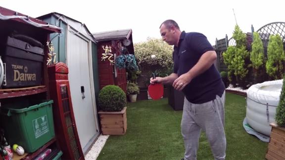 Mark Evans bounced a golf ball on the base of a table tennis paddle handle 141 times.