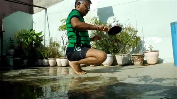 Suresh Gaur bounced a golf ball 178 times using alternate sides of a table tennis paddle while sitting on his toes.