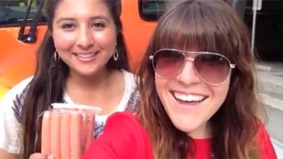 Team #HellOnBuns, Kacee and Stephanie from Oscar Mayer Hotdoggers, successfully caught a hot dog dropped from six stories (780 inches) above in a hot dog bun.